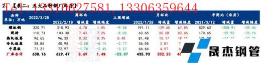 免責(zé)聲明:本網(wǎng)站(山東聊城晟杰無縫鋼管廠www.yztongfa.com)刊載的“解讀:聚焦鋼鐵產(chǎn)業(yè)數(shù)據(jù)(2月24日)—板材總庫存首次去化,建材延續(xù)供庫雙增”等均源于網(wǎng)絡(luò),版權(quán)歸原作者所有,且僅代表原作者觀點(diǎn),本文所載信息僅供參考。轉(zhuǎn)載僅為學(xué)習(xí)與交流之目的,如無意中侵犯您的合法權(quán)益,請(qǐng)及時(shí)聯(lián)系刪除。本網(wǎng)站刊登此篇文章并不意味著本站贊同其觀點(diǎn)或證實(shí)其內(nèi)容的真實(shí)性,我們不對(duì)其科學(xué)性、嚴(yán)肅性等作任何形式的保證。如果侵犯了您的版權(quán),請(qǐng)盡快聯(lián)系我們予以撤銷,謝謝合作!