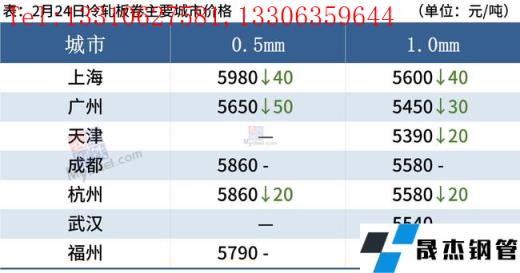 冷軋板卷:2月24日,全國24個主要城市1.0mm冷卷均價5565元/噸,較上個交易日下跌10元/噸。黑色系期貨盤面整體偏弱運行,多數(shù)商家觀望情緒濃厚,成交表現(xiàn)偏差。部分地區(qū)貿(mào)易商表示,目前庫存仍處于較高位,基于3月份訂貨壓力,市場價格普遍存在議價空間。庫存方面,據(jù)不完全統(tǒng)計,現(xiàn)冷軋無縫厚壁鋼管廠家?guī)齑?8.86萬噸,周環(huán)比減少2.08萬噸,社會庫存144.27萬噸,周環(huán)比增加2.24萬噸,周消費量81.60萬噸,環(huán)比增加0.8萬噸。綜合來看,故預計25日國內冷軋板卷價格或將穩(wěn)中偏弱運行。