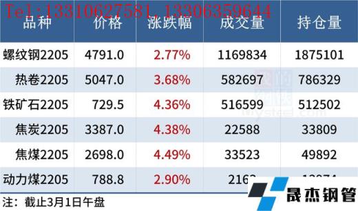 免責聲明:本網站(山東聊城晟杰無縫鋼管廠www.yztongfa.com)刊載的“2022年03月01日午報:鋼價普遍上漲,鐵礦石和焦炭期貨漲逾4%”等均源于網絡,版權歸原作者所有,且僅代表原作者觀點,本文所載信息僅供參考。轉載僅為學習與交流之目的,如無意中侵犯您的合法權益,請及時聯系刪除。本網站刊登此篇文章并不意味著本站贊同其觀點或證實其內容的真實性,我們不對其科學性、嚴肅性等作任何形式的保證。如果侵犯了您的版權,請盡快聯系我們予以撤銷,謝謝合作!