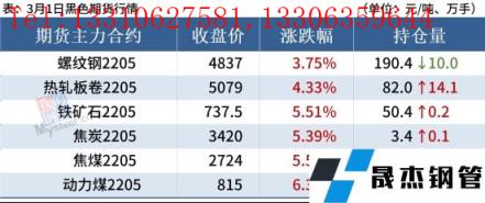 中厚板:3月1日,全國24個主要城市20mm普板均價5193元/噸,較上個交易日上漲33元/噸。今日黑色系期貨大幅上行,市場信心再度提振,疊加昨日中板成交火爆,今日現(xiàn)貨開盤市場報價紛紛上調(diào)。從供應(yīng)端來看,伴隨著冬奧會的結(jié)束,北方鋼企限產(chǎn)部分放松,產(chǎn)量有所釋放,但是仍然執(zhí)行采暖季限產(chǎn)政策,產(chǎn)量回升幅度有限。需求方面來看,下游開工情況有所好轉(zhuǎn),補(bǔ)庫意愿偏強(qiáng),加之近期盤面帶動,采購積極性有所提振。綜合預(yù)計,目前無縫厚壁鋼管廠家利潤較高,中板現(xiàn)貨底部支撐較強(qiáng),預(yù)計短期中厚板價格趨強(qiáng)運(yùn)行為主。