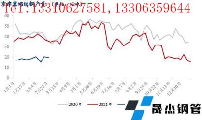 2月份全國(guó)各地市場(chǎng)價(jià)格均是在迎來(lái)開(kāi)門紅后又大幅下跌,全月價(jià)格累計(jì)漲幅均在100元/噸以內(nèi),區(qū)域間價(jià)差較之前基本無(wú)變化,目前廣州-北京價(jià)差在300元/噸左右,此價(jià)差略低于2020年、2021年同期水平,且結(jié)合無(wú)縫厚壁鋼管廠家的政策以及運(yùn)費(fèi)來(lái)看此價(jià)差也不足以吸引北方區(qū)域資源南下廣州。目前杭州-北京價(jià)差100元/噸左右,因京津冀區(qū)域在產(chǎn)無(wú)縫厚壁鋼管廠家較少,且無(wú)縫厚壁鋼管廠家產(chǎn)量處于偏低水平,因此京津冀建材市場(chǎng)處于低供給情況,無(wú)向外分流的壓力,加之與其他區(qū)域的價(jià)差不大,故京津冀建材市場(chǎng)資源向華南、華東區(qū)域分流量不多。基于目前東北區(qū)域下游需求尚未啟動(dòng),且建龍系無(wú)縫厚壁鋼管廠家冬儲(chǔ)資源尚未投放結(jié)束,目前仍處于繼續(xù)投放階段。