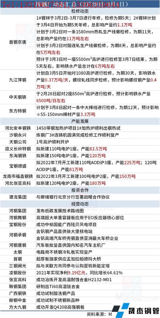 免責聲明:本網站(山東聊城晟杰無縫鋼管廠www.yztongfa.com)刊載的“一周無縫鋼管廠家動態匯總(2月28日-3月4日)”等均源于網絡,版權歸原作者所有,且僅代表原作者觀點,本文所載信息僅供參考。轉載僅為學習與交流之目的,如無意中侵犯您的合法權益,請及時聯系刪除。本網站刊登此篇文章并不意味著本站贊同其觀點或證實其內容的真實性,我們不對其科學性、嚴肅性等作任何形式的保證。如果侵犯了您的版權,請盡快聯系我們予以撤銷,謝謝合作!