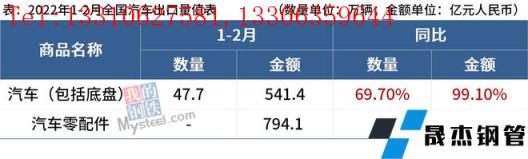 免責(zé)聲明:本網(wǎng)站(山東聊城晟杰無縫鋼管廠www.yztongfa.com)刊載的“海關(guān)總署:1-2月中國出口汽車47.7萬輛,同比增99.10%”等均源于網(wǎng)絡(luò),版權(quán)歸原作者所有,且僅代表原作者觀點(diǎn),本文所載信息僅供參考。轉(zhuǎn)載僅為學(xué)習(xí)與交流之目的,如無意中侵犯您的合法權(quán)益,請及時(shí)聯(lián)系刪除。本網(wǎng)站刊登此篇文章并不意味著本站贊同其觀點(diǎn)或證實(shí)其內(nèi)容的真實(shí)性,我們不對其科學(xué)性、嚴(yán)肅性等作任何形式的保證。如果侵犯了您的版權(quán),請盡快聯(lián)系我們予以撤銷,謝謝合作!