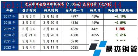免責聲明:本網站(山東聊城晟杰無縫鋼管廠www.yztongfa.com)刊載的“數據:近五年“兩會期間”冷軋市場變化趨勢”等均源于網絡,版權歸原作者所有,且僅代表原作者觀點,本文所載信息僅供參考。轉載僅為學習與交流之目的,如無意中侵犯您的合法權益,請及時聯系刪除。本網站刊登此篇文章并不意味著本站贊同其觀點或證實其內容的真實性,我們不對其科學性、嚴肅性等作任何形式的保證。如果侵犯了您的版權,請盡快聯系我們予以撤銷,謝謝合作!