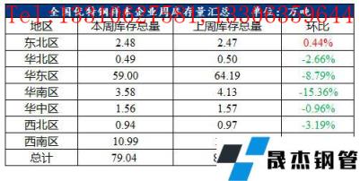 1、據對全國29個城市的貿易商跟蹤,現全國優特鋼棒材樣本總庫存79.04萬噸,環比下降6.08萬噸,降幅7.14%,同比下降12.73萬噸,降幅13.87%。