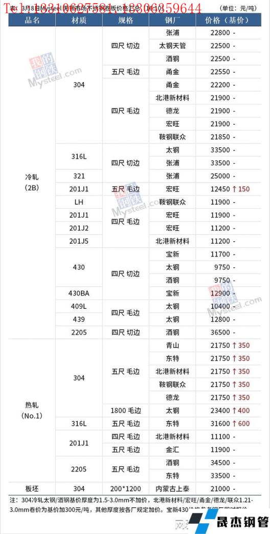 3月8日無錫市場300系價格偏強(qiáng)運(yùn)行,日內(nèi)民營冷熱軋價格漲幅1550-1600元/噸,截至下午四點(diǎn),民營304冷軋主流價格至21900-22000元/噸毛基,民營熱軋資源五尺毛邊主流價格至21650-21950元/噸;200系價格偏強(qiáng)運(yùn)行,日內(nèi)冷熱軋有400元/噸左右的上漲,截至下午四點(diǎn),無錫市場201J2/J5四尺冷軋價格主流成交在11200-11300元/噸毛基,五尺熱軋主流成交在11900-12000元/噸;400系價格穩(wěn)中偏強(qiáng)運(yùn)行,目前太鋼、酒鋼430冷軋切邊主流價格9750-9900元/噸。