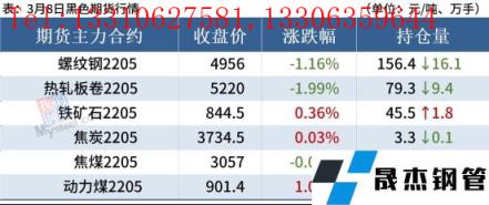 熱軋板卷:3月8日,全國24個主要城市4.75mm熱軋板卷均價5268元/噸,較上個交易日下跌21元/噸。黑色商品期貨市場早盤弱勢震蕩運行,午后跳水震蕩趨弱,午后市場繼續下調報價,近期市場報價較亂,多被盤面帶動,市場買家也跟隨盤面大幅波動而選擇觀望為主。整體來看,近期價格波動幅度較大,主要受海外地緣沖突升級導致,實際供需并未發生大的變化。綜合來看,預計9日價格或將以震蕩趨弱為主。