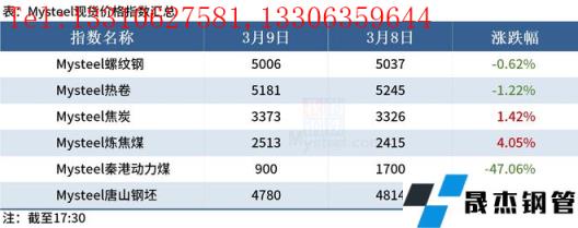 ◎ 截止3月9日,調(diào)研的山東11家長(zhǎng)短流程無縫厚壁鋼管廠家綜合廢鋼比19.88%,周環(huán)比增7.81%;廢鋼消耗總量在13.76萬噸,周環(huán)比增2.27萬噸;廢鋼庫存為13.79萬噸,周環(huán)比減0.97萬噸。詳情>>