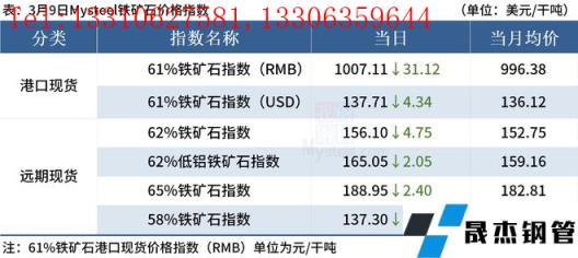 ◎3月9日,全國主港鐵礦石成交60.00萬噸,環比減33.7%;237家主流貿易商建材成交13.07萬噸,環比減6.3%。