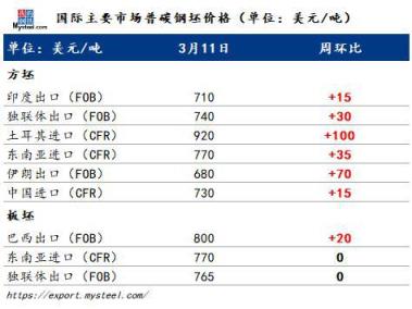 目前中國方坯與海外方坯價差較大,進口成交困難,部分貿易商進行出口操作。了解到,中國方坯出口報價在790-800美元/噸CFR東南亞,此外,市場傳聞部分貿易商轉售進口至中國的方坯。從菲律賓貿易商處了解到,本周接到中國資源報價,但中國方坯規格在菲律賓市場需求不大,因此買家興趣較小。