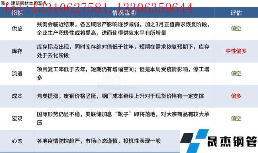 近期殘奧會臨近結束,各區域限產影響逐步減弱,高爐產量逐漸回升,但原料價格上漲導致利潤不佳,預計供給增量有限;近期項目復工率不如去年,同時疫情防控升級,或將對后續需求釋放帶來較大不確定性;心態上,目前國外供給缺口短期難以得到有效修復,原料價格仍將偏強,價格底部存在支撐。不過目前國內外形勢多變,市場情緒容易在短期發生較大變動,因此商家心態普遍較為謹慎,降庫避險仍將為市場主流選擇。綜合來看,預計本周本地建筑厚壁無縫鋼管價格將呈趨弱震蕩運行態勢。