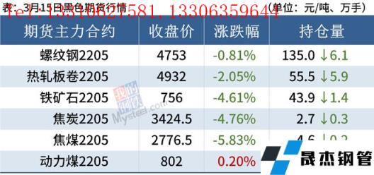 3月15日,國內厚壁無縫鋼管市場普遍下跌,唐山普方坯出廠價下跌20報4640元/噸。今日早盤,黑色期貨全線低開,厚壁無縫鋼管現貨市場跟隨下跌,隨著市場低價成交有所好轉,期螺跌勢有所放緩。