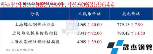 3月16日普鋼絕對(duì)價(jià)格指數(shù)變化:綜合指數(shù)5172.22,上漲24.96;螺紋鋼指數(shù)4917.17,上漲18.91;線材指數(shù)5252.19,上漲20.06;熱軋板卷指數(shù)5086.05,上漲56.05;冷軋板卷指數(shù)5517.19,上漲5.16;中厚板指數(shù)5140.45,上漲19.76。