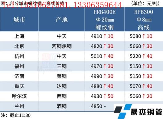◎北京:17日早盤(pán)建材市場(chǎng)價(jià)格小漲30,河鋼小螺紋4910-4930,大螺紋4800-4820,盤(pán)螺5030。(單位:元/噸)