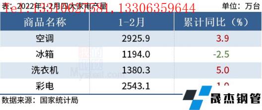 免責聲明:本網站(山東聊城晟杰無縫鋼管廠www.yztongfa.com)刊載的“統計局:1-2月中國四大家電產量3增1降”等均源于網絡,版權歸原作者所有,且僅代表原作者觀點,本文所載信息僅供參考。轉載僅為學習與交流之目的,如無意中侵犯您的合法權益,請及時聯系刪除。本網站刊登此篇文章并不意味著本站贊同其觀點或證實其內容的真實性,我們不對其科學性、嚴肅性等作任何形式的保證。如果侵犯了您的版權,請盡快聯系我們予以撤銷,謝謝合作!