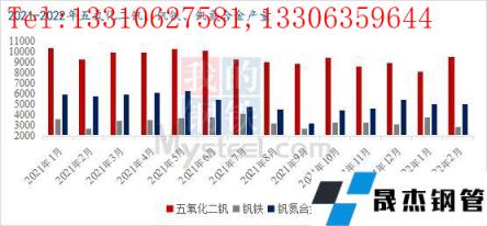 從消費端看,我們將近三年無縫厚壁鋼管廠家對釩合金的消費量進行對比,不難發(fā)現(xiàn),3-5月為無縫厚壁鋼管廠家需求高峰期,并且近三年都是在5月份達到一個相對高值。考慮到22年春節(jié)相較21年有所提前,復(fù)工復(fù)產(chǎn)提早,今年大概率無縫厚壁鋼管廠家對于釩合金高峰消費量會提前到3月末-4月份,也就是下輪鋼招開啟時間。