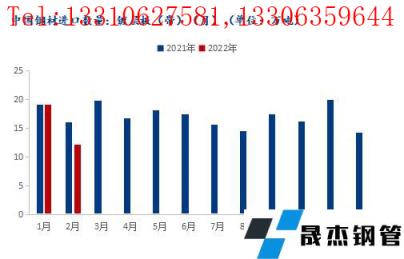 2022年2月我國(guó)鍍鋅板(帶)進(jìn)口總量共計(jì)12.21萬(wàn)噸,年同比下降24.1%;2022年1-2月份我國(guó)鍍鋅板(帶)進(jìn)口總量共計(jì)31.32萬(wàn)噸,年同比下降11.0%。
