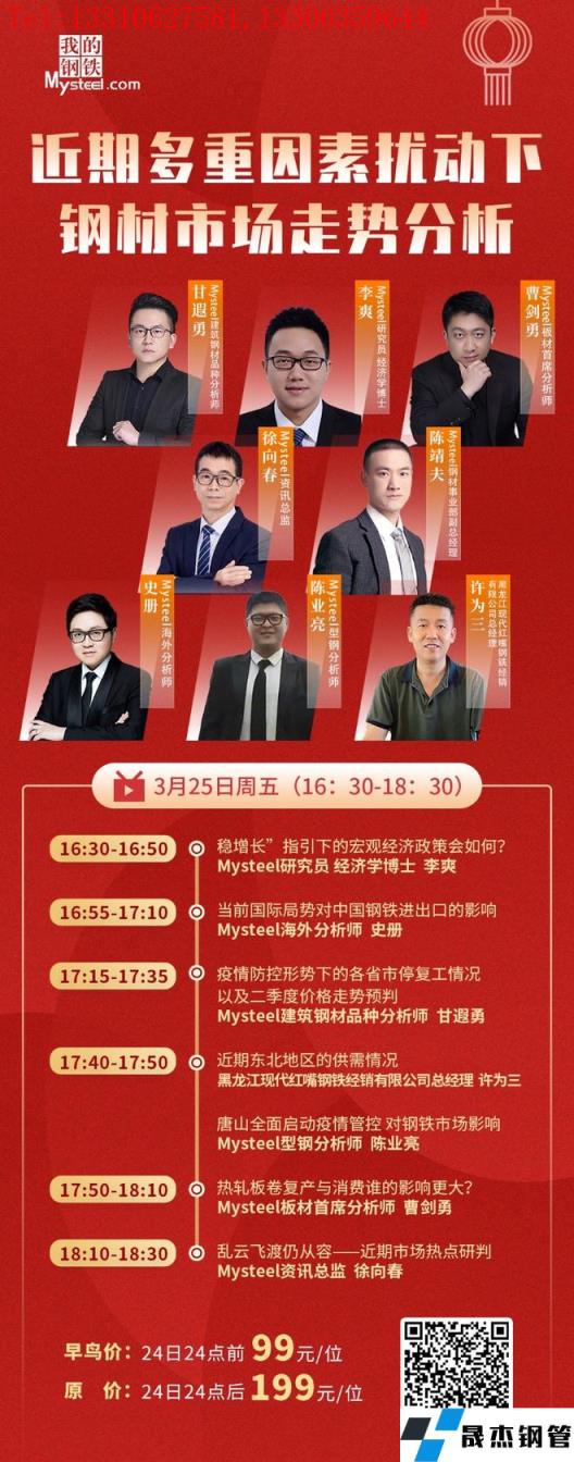 3月25日周五下午16:30,黑龍江現(xiàn)代紅嘴鋼鐵經(jīng)銷有限公司總經(jīng)理許為三、資訊總監(jiān)徐向春、經(jīng)濟(jì)學(xué)博士研究員李爽、板材首席分析師曹劍勇、建筑厚壁無縫鋼管品種分析師甘遐勇、型鋼分析師陳業(yè)亮及國際鋼鐵市場(chǎng)分析師史冊(cè),將做客直播間,聊一聊近期多重因素?cái)_動(dòng)下對(duì)鋼鐵市場(chǎng)的影響有哪些?
