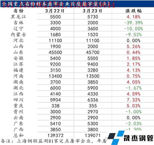 截至3月23號,國內重點屠宰企業開工率為26.52%,環比昨日小幅下降,未來幾日的封禁對于屠宰企業開工有著明顯的利空,預計未來幾日,部分北方地區屠企開工率或繼續下降,那就意味著他們的利潤將被繼續擠壓。
