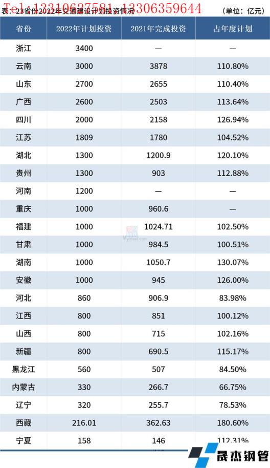 免責聲明:本網站(山東聊城晟杰無縫鋼管廠www.yztongfa.com)刊載的“23省份2022年交通建設計劃投資近3萬億元”等均源于網絡,版權歸原作者所有,且僅代表原作者觀點,本文所載信息僅供參考。轉載僅為學習與交流之目的,如無意中侵犯您的合法權益,請及時聯系刪除。本網站刊登此篇文章并不意味著本站贊同其觀點或證實其內容的真實性,我們不對其科學性、嚴肅性等作任何形式的保證。如果侵犯了您的版權,請盡快聯系我們予以撤銷,謝謝合作!