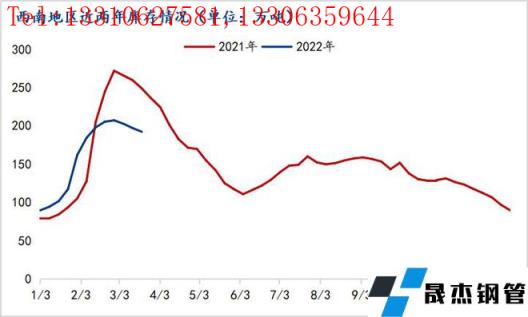 三月份西南地區(qū)建筑厚壁無縫鋼管窄幅震蕩運行,下游復(fù)工復(fù)產(chǎn)不及預(yù)期、全國疫情再次擴(kuò)散、俄烏局勢沖突未息等多重因素疊加,放緩了季節(jié)性需求釋放的速度,西南整體去庫存速度同比偏緩慢。筆者就西南地區(qū)庫存數(shù)據(jù)情況作簡要分析。