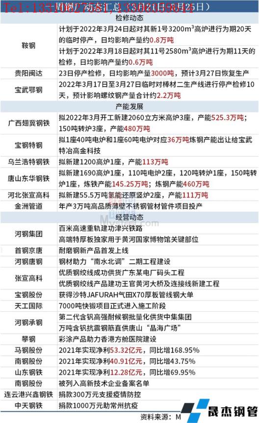 免責聲明:本網站(山東聊城晟杰無縫鋼管廠www.yztongfa.com)刊載的“一周無縫鋼管廠家動態匯總(3月21日-3月25日)”等均源于網絡,版權歸原作者所有,且僅代表原作者觀點,本文所載信息僅供參考。轉載僅為學習與交流之目的,如無意中侵犯您的合法權益,請及時聯系刪除。本網站刊登此篇文章并不意味著本站贊同其觀點或證實其內容的真實性,我們不對其科學性、嚴肅性等作任何形式的保證。如果侵犯了您的版權,請盡快聯系我們予以撤銷,謝謝合作!