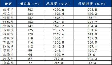 根據這些數據可以看到,從總投資額來看,南寧、防城港、桂林成為重點建設的城市,從項目數量來說,南寧、崇左、欽州成為最多的3個城市,從2022年的投資額來看,玉林、百色、桂林成為重點建設城市。