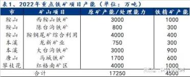 對(duì)于以上納入市政府2022年工作報(bào)告中的鐵礦項(xiàng)目,調(diào)研匯總了這些項(xiàng)目的產(chǎn)能信息: