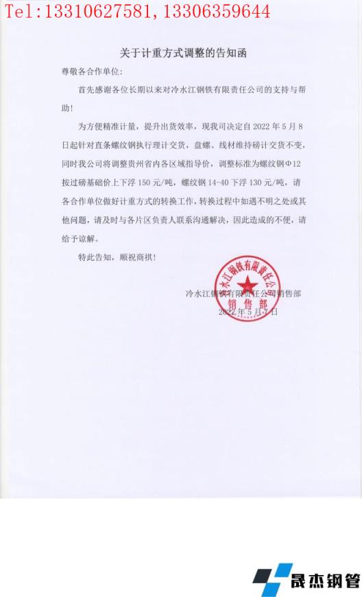 免責(zé)聲明:本網(wǎng)站(山東聊城晟杰無縫鋼管廠www.yztongfa.com)刊載的“冷水江鋼鐵有限責(zé)任公司關(guān)于對貴州區(qū)域計重方式調(diào)整的告知函”等均源于網(wǎng)絡(luò),版權(quán)歸原作者所有,且僅代表原作者觀點,本文所載信息僅供參考。轉(zhuǎn)載僅為學(xué)習(xí)與交流之目的,如無意中侵犯您的合法權(quán)益,請及時聯(lián)系刪除。本網(wǎng)站刊登此篇文章并不意味著本站贊同其觀點或證實其內(nèi)容的真實性,我們不對其科學(xué)性、嚴肅性等作任何形式的保證。如果侵犯了您的版權(quán),請盡快聯(lián)系我們予以撤銷,謝謝合作!