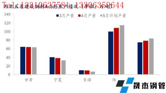 甘肅區(qū)域:5月甘肅主要無縫厚壁鋼管廠家建筑厚壁無縫鋼管總產(chǎn)量63.24萬噸,其中螺紋鋼計(jì)劃產(chǎn)量38.84萬噸,線盤計(jì)劃產(chǎn)量24.4為萬噸,較4月無明顯變化。