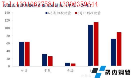 5月,西北各省份主要無縫厚壁鋼管廠家預(yù)計(jì)投放總量299.4萬噸,較4月實(shí)際投放量增加16.06萬噸,增幅5.7%。其中寧夏和青海受無縫厚壁鋼管廠家生產(chǎn)減少影響,投放有所減量;甘肅基本達(dá)到產(chǎn)銷平衡,而新疆和陜西由于目前無縫厚壁鋼管廠家自有庫存壓力較大,降庫存意圖明顯,資源投放預(yù)期有所增加。