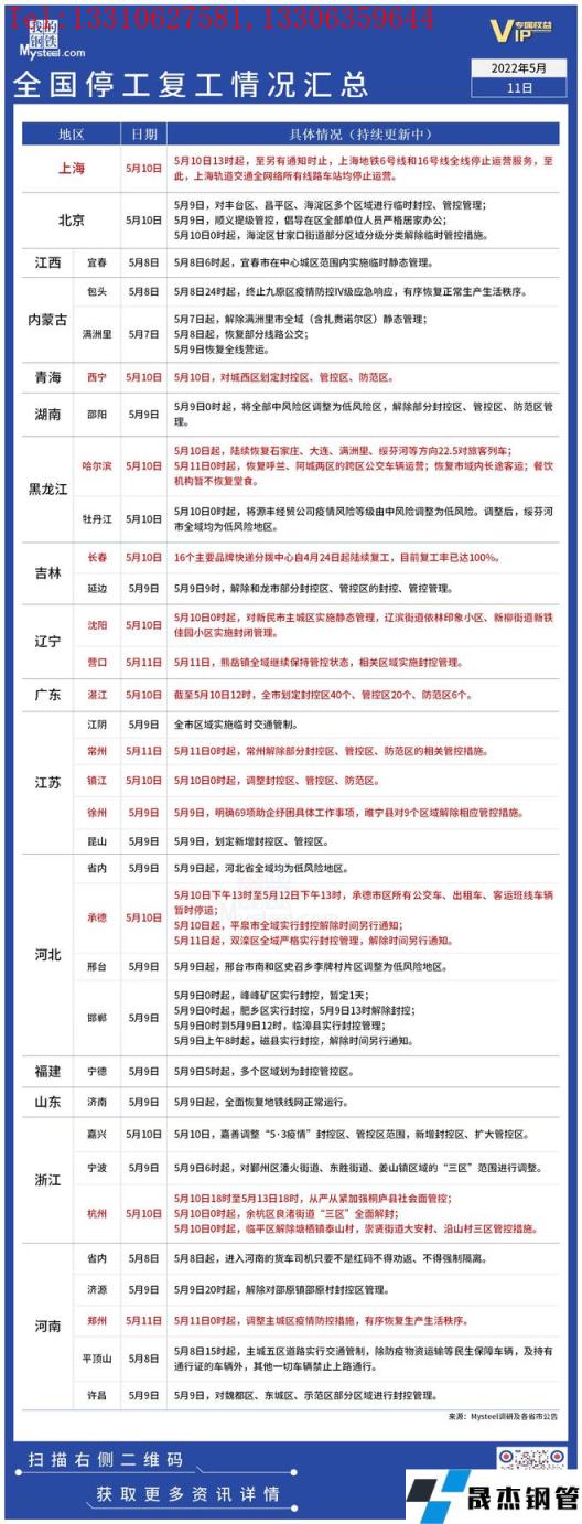 免責聲明:本網站(山東聊城晟杰無縫鋼管廠www.yztongfa.com)刊載的“疫情影響丨全國停工復工情況匯總(5月11日)”等均源于網絡,版權歸原作者所有,且僅代表原作者觀點,本文所載信息僅供參考。轉載僅為學習與交流之目的,如無意中侵犯您的合法權益,請及時聯系刪除。本網站刊登此篇文章并不意味著本站贊同其觀點或證實其內容的真實性,我們不對其科學性、嚴肅性等作任何形式的保證。如果侵犯了您的版權,請盡快聯系我們予以撤銷,謝謝合作!