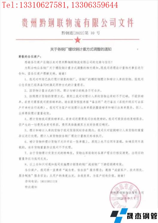 免責(zé)聲明:本網(wǎng)站(山東聊城晟杰無縫鋼管廠www.yztongfa.com)刊載的“貴州黔鋼聯(lián)物流有限公司關(guān)于各無縫鋼管廠家螺紋鋼計重方式調(diào)整的通知”等均源于網(wǎng)絡(luò),版權(quán)歸原作者所有,且僅代表原作者觀點(diǎn),本文所載信息僅供參考。轉(zhuǎn)載僅為學(xué)習(xí)與交流之目的,如無意中侵犯您的合法權(quán)益,請及時聯(lián)系刪除。本網(wǎng)站刊登此篇文章并不意味著本站贊同其觀點(diǎn)或證實其內(nèi)容的真實性,我們不對其科學(xué)性、嚴(yán)肅性等作任何形式的保證。如果侵犯了您的版權(quán),請盡快聯(lián)系我們予以撤銷,謝謝合作!