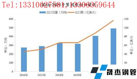 海關(guān)數(shù)據(jù)顯示,自2016年以來,緊固件出口量及出口金額進本呈現(xiàn)逐年遞增的情況,其中2018年出口到美國的總量為64萬噸,同比增加4.6萬噸,增幅為7.69%;出口金額為12.5億美元,同比增加2.09億美元,增幅為20.08%。