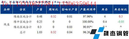 1、調(diào)研數(shù)據(jù)顯示,統(tǒng)計的河南地區(qū)10家建筑厚壁無縫鋼管樣本無縫厚壁鋼管廠家中,河南省無縫厚壁鋼管廠家線盤日均產(chǎn)量1.03萬噸,較上周增加0.32萬噸;檢修/限產(chǎn)影響建材日產(chǎn)量為0.04萬噸,產(chǎn)能利用率96.26%,較上周上升29.91%。