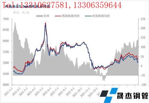 首先,看一下今年西南整體熱卷價格走勢呈現先漲后跌的態(tài)勢。以西南地區(qū)熱卷均價為例,今年西南5.5mm普卷最高值出現在4月8日,市場價格為5458元/噸,年前價格4720元/噸,較年初上漲738元/噸。先漲的原因主要分為外部和內部。外部因素:一、年初受冬奧會及兩會等影響,無縫厚壁鋼管廠家限產擾動下熱卷產量下降,壓縮熱卷現貨供應,低供應格局給予卷價上漲動力。二、俄烏沖突導致全球供需平衡被打破,海外熱卷上漲至1500美元/噸,刺激國內熱卷出口量大幅增長。內部原因:一、一季度期間重鋼、攀鋼、罡宸等本地熱卷無縫厚壁鋼管廠家陸續(xù)檢修維護,本地供應明顯減少。二、年初西南地區(qū)熱卷價格對比全國偏低,外圍資源無利可圖,區(qū)域無縫厚壁鋼管廠家外發(fā)資源增加,使得市場長期呈現供不應求的狀態(tài),西南地區(qū)價格節(jié)節(jié)攀升。而后跌是在進入4月份以來,新一輪疫情襲擊全國多地,造成制造業(yè)供應鏈阻塞,下游需求被迫延遲,從而引發(fā)價格回落。