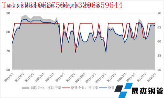 再次從生產方面看,5月6日整個南方大區(qū)鋼鐵企業(yè)開工率為84.62%,較節(jié)前持平,產能利用率為83.45%,較節(jié)前小幅上升,實際產量為66.66,同樣相對節(jié)前有所上升。從利潤角度看,據調研4月底螺紋鋼平均含稅成本為5052元/噸,環(huán)比增加66元/噸,增幅1.3%,盈利-154元/噸,減少60元/噸;熱卷為5129元/噸,環(huán)比增加76元/噸,增幅1.5%,盈利-70元/噸,減少185元/噸;中厚板為5142元/噸,環(huán)比增加74元/噸,增幅1.5%,盈利18元/噸,減少145元/噸。當前熱卷盈利水平表現好于螺紋鋼弱勢中厚板,在產量壓減的影響下,綜合性無縫厚壁鋼管廠家對于熱卷的生產進行適時調整,以及部分新上產量釋放,預計三季度產量同比大體持平。