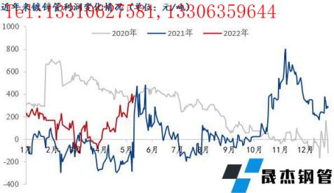 從鍍鋅管利潤角度看來:當前管廠利潤處于年內高位,若出貨不暢,不排除出臺更多的優惠政策,以價換量。