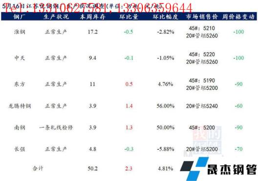 江蘇優(yōu)特無縫厚壁鋼管廠家棒材總庫存50.2萬噸,較上周增加2.3萬噸,環(huán)比增4.81%,較去年同期增加13.41萬噸,同比增36.45%。