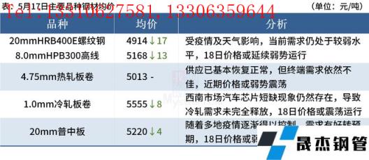 ◎5月17日唐山個別無縫厚壁鋼管廠家晚8點起執行焦炭價格下調200元/噸,降后準一級焦炭現匯到廠含稅價3260-3310元/噸。