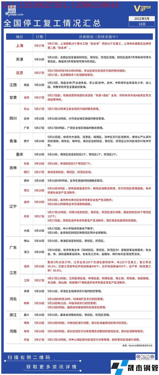免責聲明:本網站(山東聊城晟杰無縫鋼管廠www.yztongfa.com)刊載的“疫情影響丨全國停工復工情況匯總(5月18日)”等均源于網絡,版權歸原作者所有,且僅代表原作者觀點,本文所載信息僅供參考。轉載僅為學習與交流之目的,如無意中侵犯您的合法權益,請及時聯系刪除。本網站刊登此篇文章并不意味著本站贊同其觀點或證實其內容的真實性,我們不對其科學性、嚴肅性等作任何形式的保證。如果侵犯了您的版權,請盡快聯系我們予以撤銷,謝謝合作!