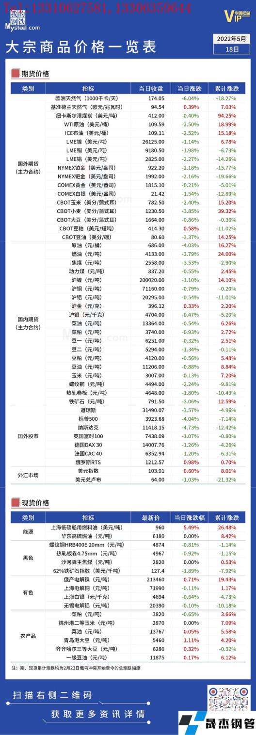 免責聲明:本網站(山東聊城晟杰無縫鋼管廠www.yztongfa.com)刊載的“俄烏局勢丨大宗商品價格一覽表(5月18日)”等均源于網絡,版權歸原作者所有,且僅代表原作者觀點,本文所載信息僅供參考。轉載僅為學習與交流之目的,如無意中侵犯您的合法權益,請及時聯系刪除。本網站刊登此篇文章并不意味著本站贊同其觀點或證實其內容的真實性,我們不對其科學性、嚴肅性等作任何形式的保證。如果侵犯了您的版權,請盡快聯系我們予以撤銷,謝謝合作!