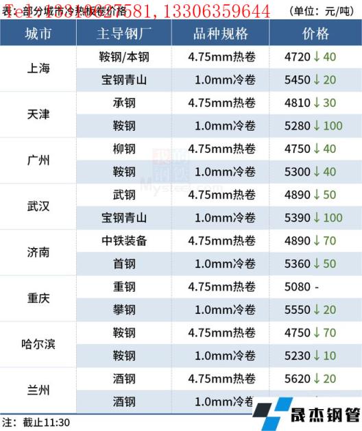 ◎樂從:19日早盤熱卷市場價格下跌40,4.75以上普柳燕4750-4760,2.75普4950-5020錳4930-4950。(單位:元/噸)