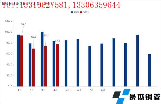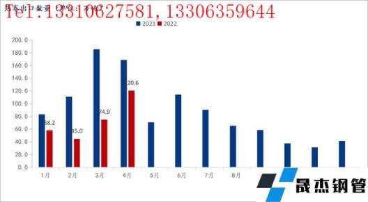 從價(jià)差的角度來看,受烏俄沖突導(dǎo)致的全球厚壁無縫鋼管供需錯(cuò)配影響,海外市場熱卷價(jià)格在4月份觸及高點(diǎn),全球市場除中國外熱卷平均價(jià)格已經(jīng)超過1000美元/噸,海內(nèi)外價(jià)差達(dá)到1700元/噸。在海外市場急需補(bǔ)庫以及大額價(jià)差的情況下,3-4月份大批量詢單開始蜂涌至中國各大無縫厚壁鋼管廠家及國貿(mào)商,大量4-6月船期出口訂單被簽訂,這從3-4月熱卷出口量可以得到印證。近期海外市場價(jià)格開始有所回落,海外市場補(bǔ)庫也基本完成,因此我國熱卷出口或?qū)⒘炕驅(qū)⒃?月份觸及年內(nèi)最高點(diǎn),后逐漸回落。