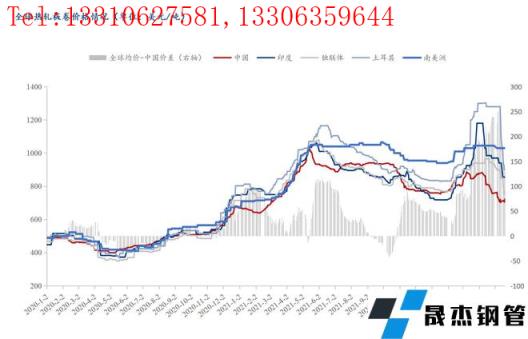 近期受烏俄沖突影響,導(dǎo)致俄羅斯本地資源無法外流,當(dāng)?shù)毓┐笥谇笄闆r嚴(yán)峻,因此在2-4月份全球厚壁無縫鋼管價(jià)格大幅上漲的同時(shí),俄羅斯內(nèi)貿(mào)價(jià)格并未發(fā)生大幅度變化。相反俄羅斯板材以及半成品價(jià)格逐步趨向于全球厚壁無縫鋼管價(jià)格洼地,也有一部分資源開始流向中國,根據(jù)近期對俄羅斯進(jìn)口資源調(diào)研得知目前在華東以及華南市場有十余萬噸八月到岸遠(yuǎn)期熱卷在售,報(bào)價(jià)處于市場較低位置,同時(shí)也有十余萬噸板坯資源將在近期到港,價(jià)格也處于低位。