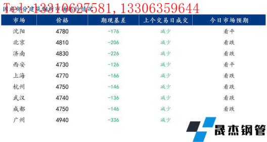 現(xiàn)貨市場動態(tài):23日,全國31個主要城市20mm三級抗震螺紋鋼均價4839元/噸,較上個交易日跌10元/噸;上海螺紋鋼美元計價指數(shù)收于729.78,跌0.08%。具體來看,昨日早盤期螺震蕩運(yùn)行,部分地區(qū)市場報價小幅上漲,盤中期螺轉(zhuǎn)弱,成交轉(zhuǎn)弱,市場情緒較為悲觀,商家多以暗降出貨。午后期螺繼續(xù)走弱,現(xiàn)貨價格進(jìn)一步走低,全天成交表現(xiàn)清淡。預(yù)計今日國內(nèi)建筑厚壁無縫鋼管市場偏弱運(yùn)行。