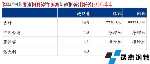 如圖所示,4月鋼坯出口主要目的地為中國臺灣和意大利,均為首次。