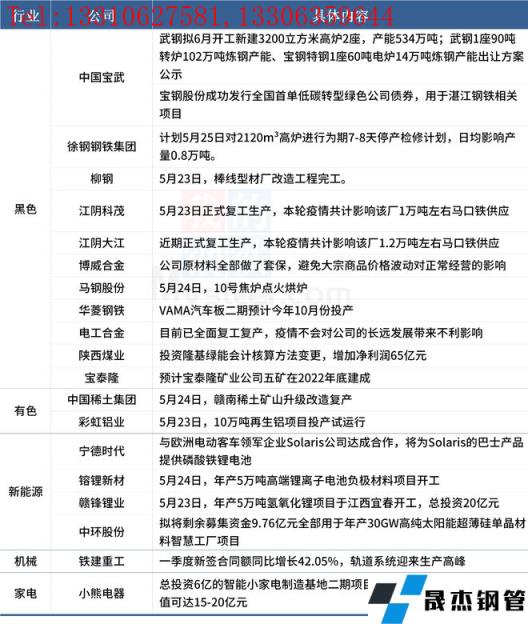 武鋼擬6月開工新建3200立方米高爐2座,產能534萬噸;江陰科茂、江陰大江兩無縫厚壁鋼管廠家近期正式復工。