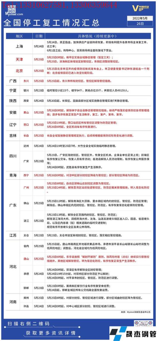 免責(zé)聲明:本網(wǎng)站(山東聊城晟杰無(wú)縫鋼管廠www.yztongfa.com)刊載的“疫情影響丨全國(guó)停工復(fù)工情況匯總(5月26日)”等均源于網(wǎng)絡(luò),版權(quán)歸原作者所有,且僅代表原作者觀點(diǎn),本文所載信息僅供參考。轉(zhuǎn)載僅為學(xué)習(xí)與交流之目的,如無(wú)意中侵犯您的合法權(quán)益,請(qǐng)及時(shí)聯(lián)系刪除。本網(wǎng)站刊登此篇文章并不意味著本站贊同其觀點(diǎn)或證實(shí)其內(nèi)容的真實(shí)性,我們不對(duì)其科學(xué)性、嚴(yán)肅性等作任何形式的保證。如果侵犯了您的版權(quán),請(qǐng)盡快聯(lián)系我們予以撤銷,謝謝合作!