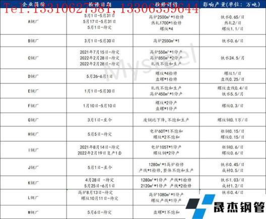 江蘇無(wú)縫厚壁鋼管廠家本周影響產(chǎn)量小幅減少,共計(jì)13家無(wú)縫厚壁鋼管廠家非正常生產(chǎn),較上周檢修停產(chǎn)鋼企數(shù)量持平,目前鐵水影響產(chǎn)量較上周增加0.6萬(wàn)噸 /日,粗鋼影響產(chǎn)量較上周減少0.3萬(wàn)噸 /日,成材影響產(chǎn)量減少增加1.55萬(wàn)噸 /日。5月22日,印度政府出臺(tái)針對(duì)鋼鐵原料及產(chǎn)品的進(jìn)出口關(guān)稅調(diào)整政策。將焦煤、焦炭的進(jìn)口稅率由2.5%、5%降至0關(guān)稅;將寬度在600毫米以上的熱軋、冷軋及涂鍍板卷的出口關(guān)稅由0%提高至15%,不同鐵品位和品種的鐵礦石出口關(guān)稅上調(diào)至45%-50%不等。經(jīng)測(cè)算,該政策對(duì)鐵礦影響較大。同時(shí),我們注意到電爐螺紋利潤(rùn)-197元/噸,電爐無(wú)縫厚壁鋼管廠家持續(xù)虧損將觸發(fā)后期產(chǎn)量收縮,6月份多數(shù)無(wú)縫厚壁鋼管廠家將或面臨繼續(xù)減產(chǎn)的可能。具體情況及各主要品種日均影響產(chǎn)量(單位:萬(wàn)噸)詳見(jiàn)下表: